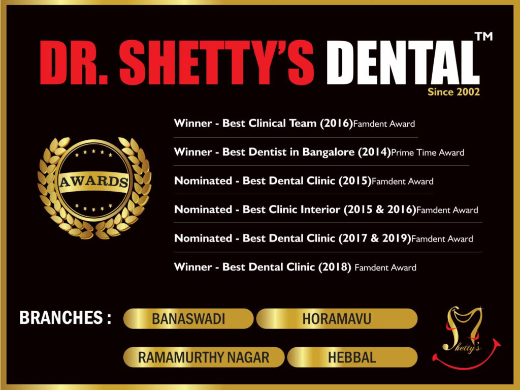 Dr.Shetty’s Dental is one of the premier dental clinics in Bengaluru committed to becoming the ultimate destination for all your dental problems.Our team of professionals is committed to delivering the best quality dental health care for our patients. Our state of the art technology enables us to provide the highest quality care with a personal touch.Dental implants can restore your chewing and speaking abilities, prevent bone loss and shifting of your remaining teeth, and improve your facial appearance and self-esteem.Find a diverse spectrum of dental solutions from a huge team of qualified professionals under one roof.We provide low-cost dental treatment when it comes to Oral Health Care.
